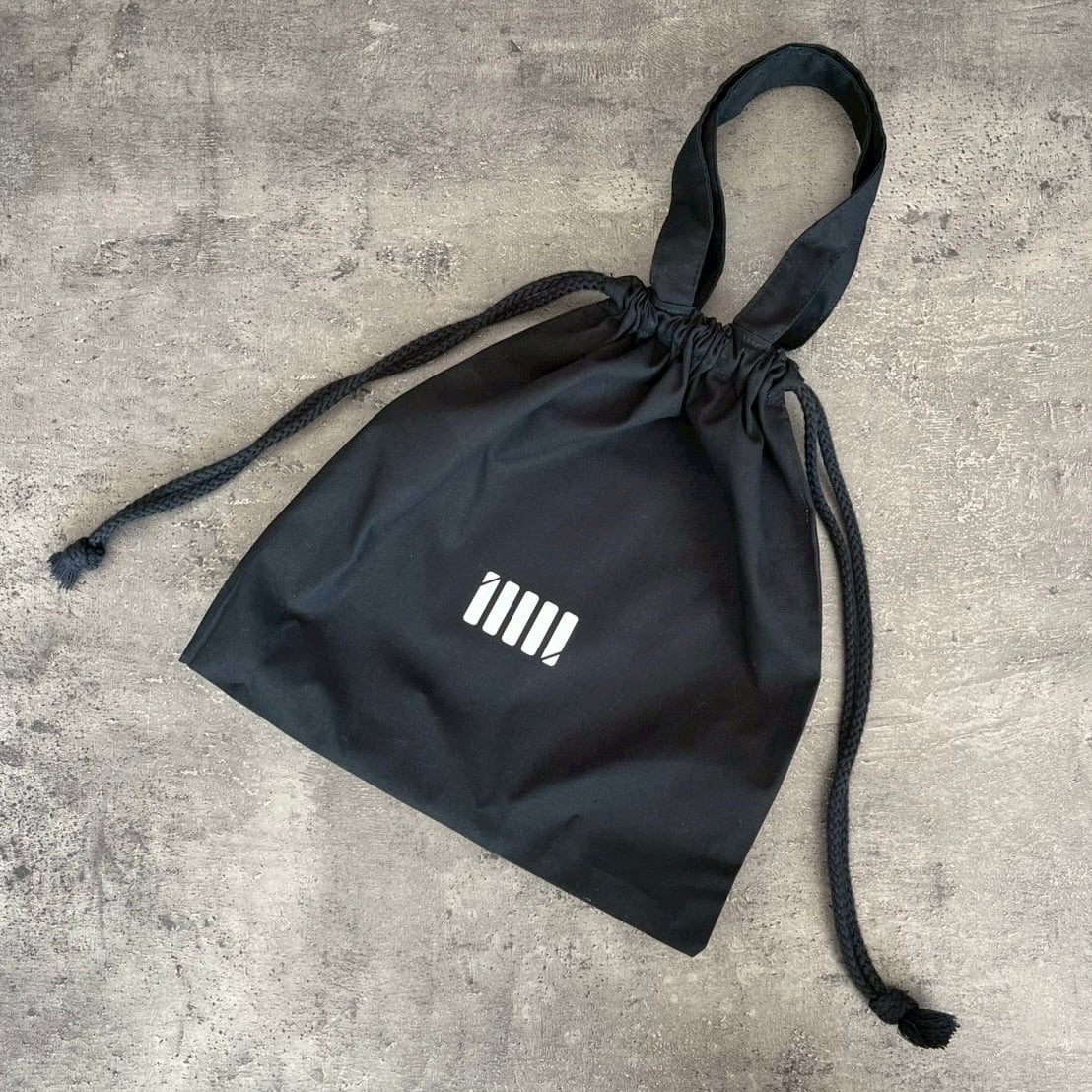 ワンマイルバッグとして、バッグインバッグ用のポーチとして、着こなしのアクセント用アクセサリーとして、と幅広い用途で使える絶妙なサイジングの巾着型バッグ。ボディにはしっかりとした素材感のコットン製平織生地を採用し、巾着ならではのドレープ感やボリューム感を引き立てたバッグ。