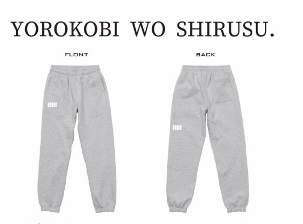 よろこびをしるす。のロゴを右前、左後ろ腿にしるした 12.0オンス ヘヴィーウェイト スウェット パンツ(裏起毛)